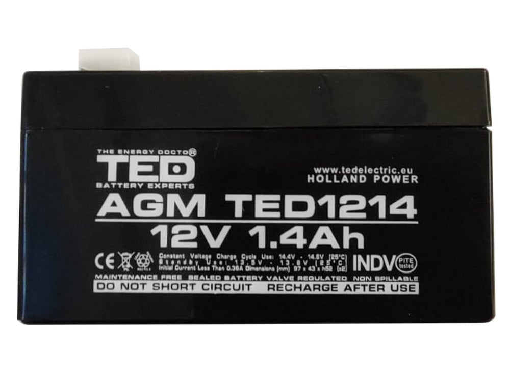 Acumulator Ted 12V 1.4AH GEL, ideal pentru sisteme de alarmă și UPS. Calitate superioară, capsulat și fără întreținere. Comandă acum la preț avantajos!