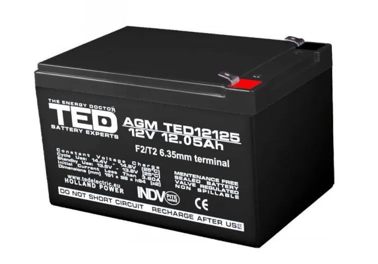 Alege acumulatorul TED12125 de la Atu tech pentru o sursă de alimentare de încredere în sistemul tău de securitate. Comandă acum și beneficiază de calitate superioară și livrare rapidă!