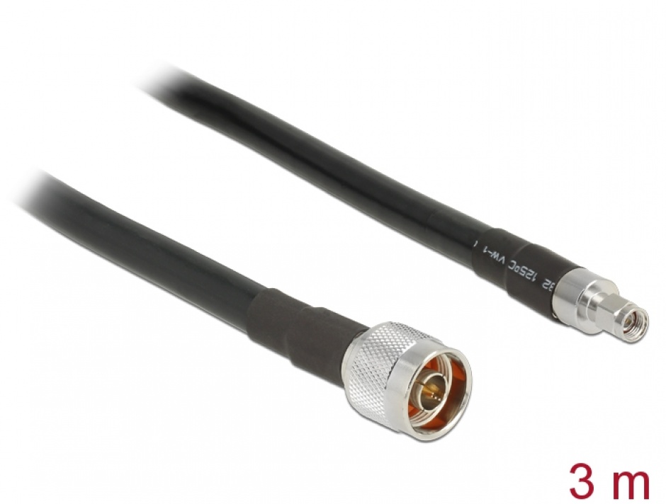 Cablu coaxial Delock 3m, atenuare minimă. Conectori N și RP-SMA tata. Calitate superioară la 259 RON. Comandă acum!