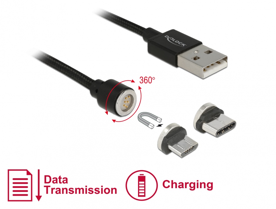 Cumpără Cablul USB Magnetic Delock, 1.1m, Micro USB/USB-C. Încărcare rapidă și date, protejează portul. Comandă acum la un preț excelent!