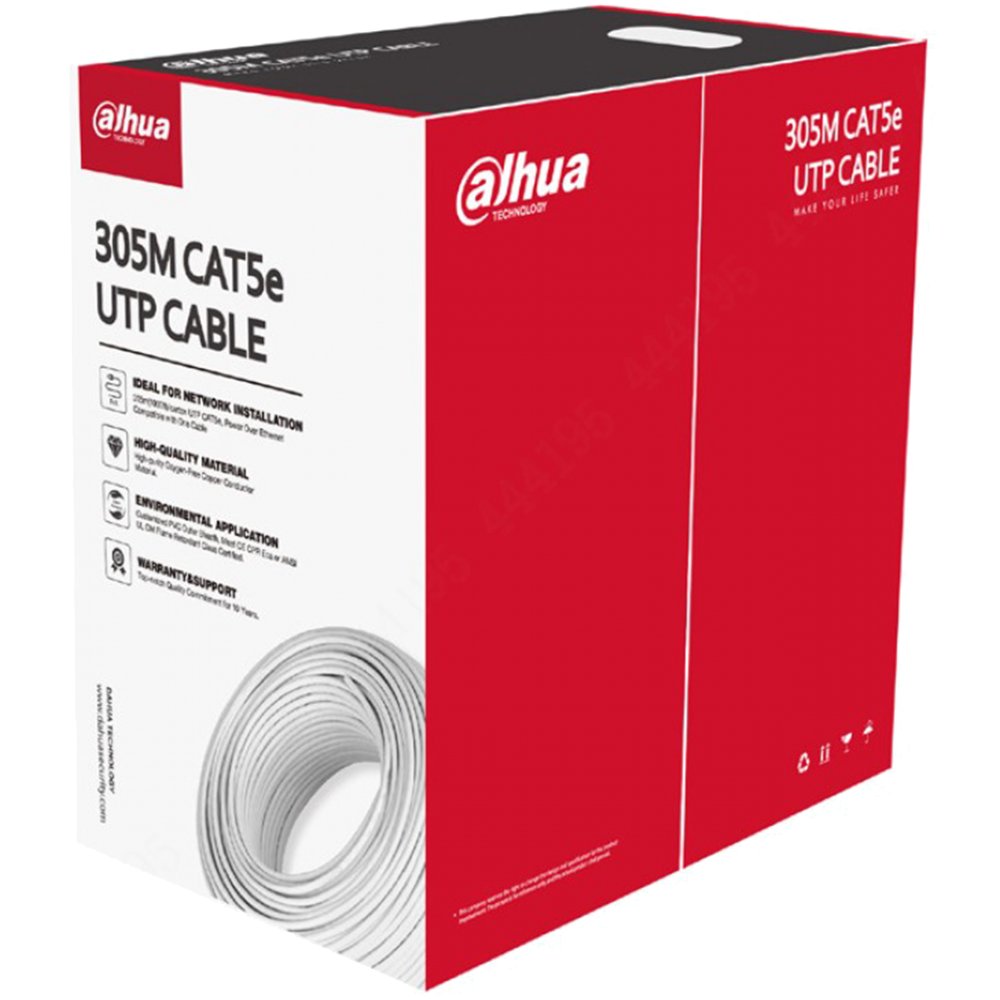 Cablu UTP CAT5E Dahua, cupru pur 99.99%, 305m. Ideal pentru sisteme supraveghere cu long PoE. Comandă acum la preț avantajos!