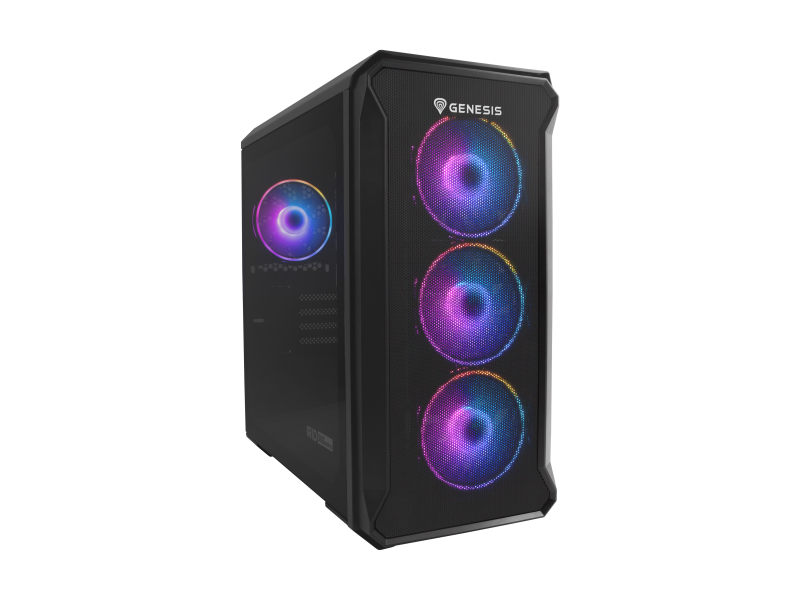 Carcasa Genesis IRID 503 V2 cu geam tempered glass și 4 ventilatoare ARGB incluse. Suportă plăci video până la 375mm. Design modern pentru gaming!