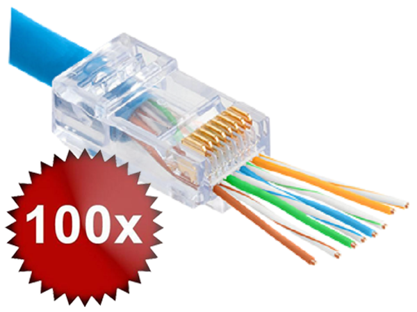 Conectori RJ45 Pass Through CAT 6E, pachet 100 buc. Calitate premium cu contacte aurite. Comandă acum la preț avantajos!