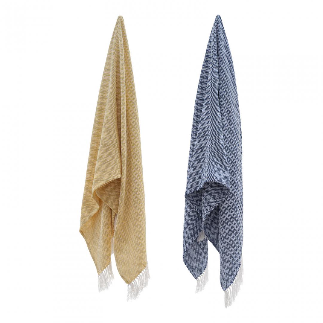 Pled cuvertura Zig 160x200 cm, 75% bumbac, 25% poliester, cu ciucuri decorative. Disponibil în galben și albastru. Comandă acum!