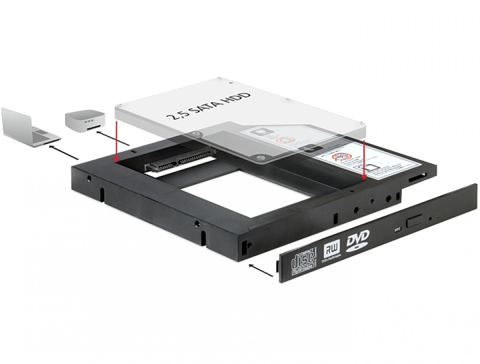 Transformă unitatea optică în spațiu de stocare cu Caddy Delock 61993. Compatibil HDD 2.5" și SSD. Cumpără acum la preț avantajos!
