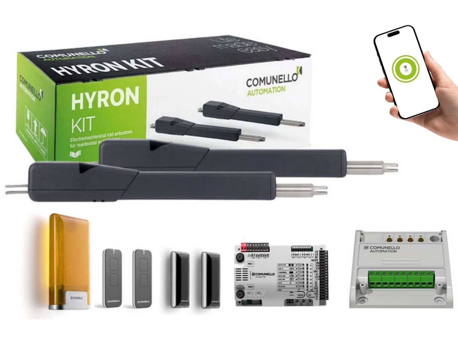 Kit complet automatizare porti batante Comunello Hyron 300 cu Wi-Fi, 2x400kg. Control vocal si aplicatie mobila. Comanda acum!