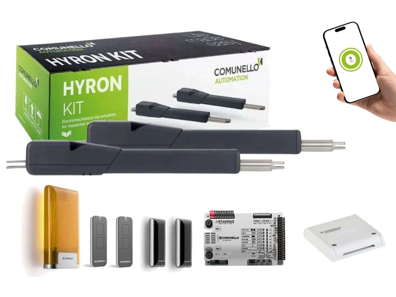 Kit complet automatizare porti batante Comunello HYRON 500, pana la 500kg/canat, control WiFi si aplicatie mobila. Comanda acum!