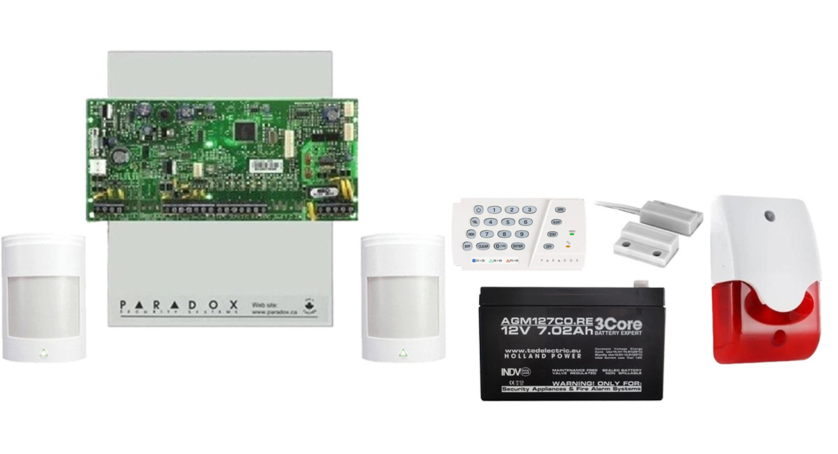 Kit alarmă Paradox SP4000 complet pentru apartament. Instalație profesională. Comandă acum pentru protecție maximă!