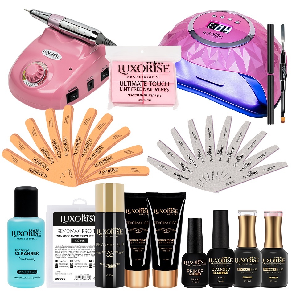 Kit Unghii PRO100 cu Polygel, tipsuri și aparatură Luxorise. Cumpără acum pentru manichiură profesională!