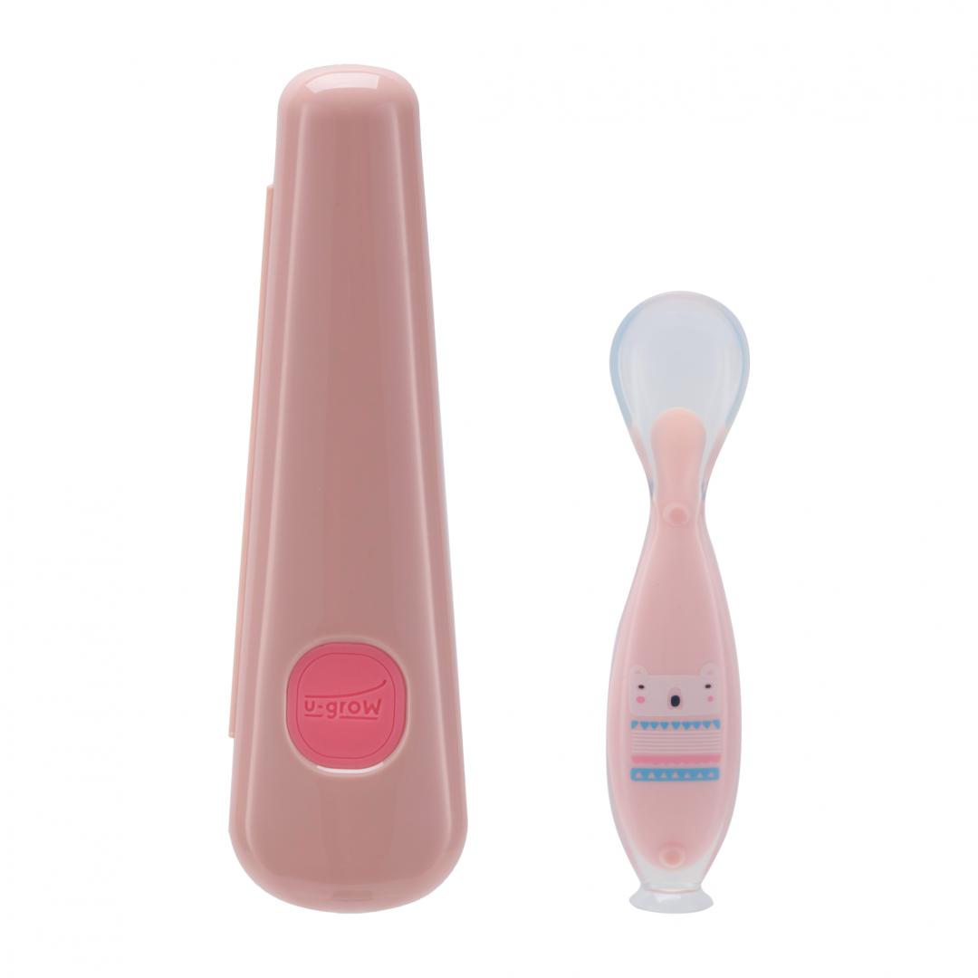 Linguriță silicon U-GROW cu ventuză roz - ideală pentru hrănirea bebelușului. Material sigur, prindere stabilă. Comandă acum la preț avantajos!