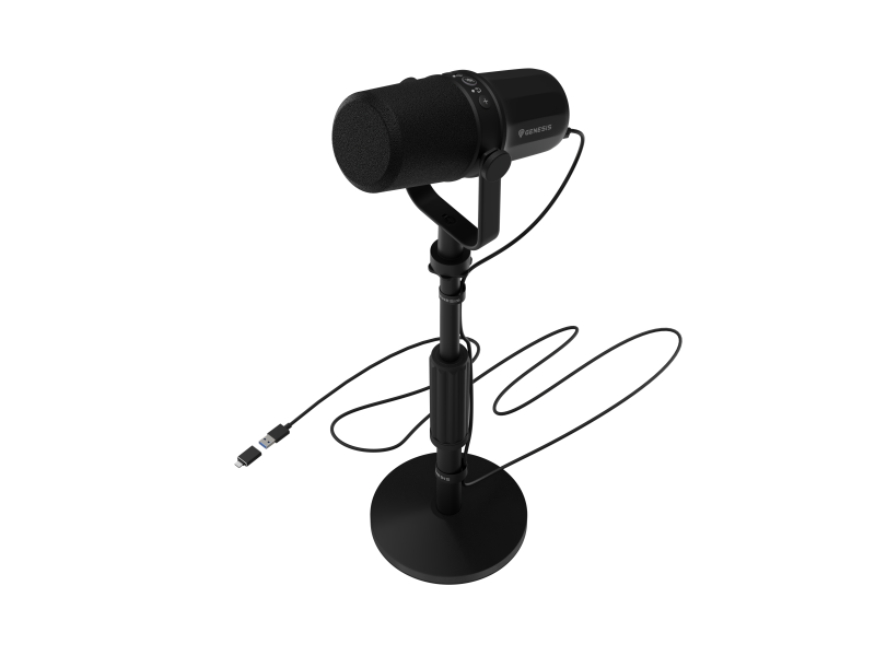 Microfon Genesis Radium 750D cu conectare USB și XLR, ideal pentru streaming și înregistrări profesionale. Comandă acum de la Genesis!