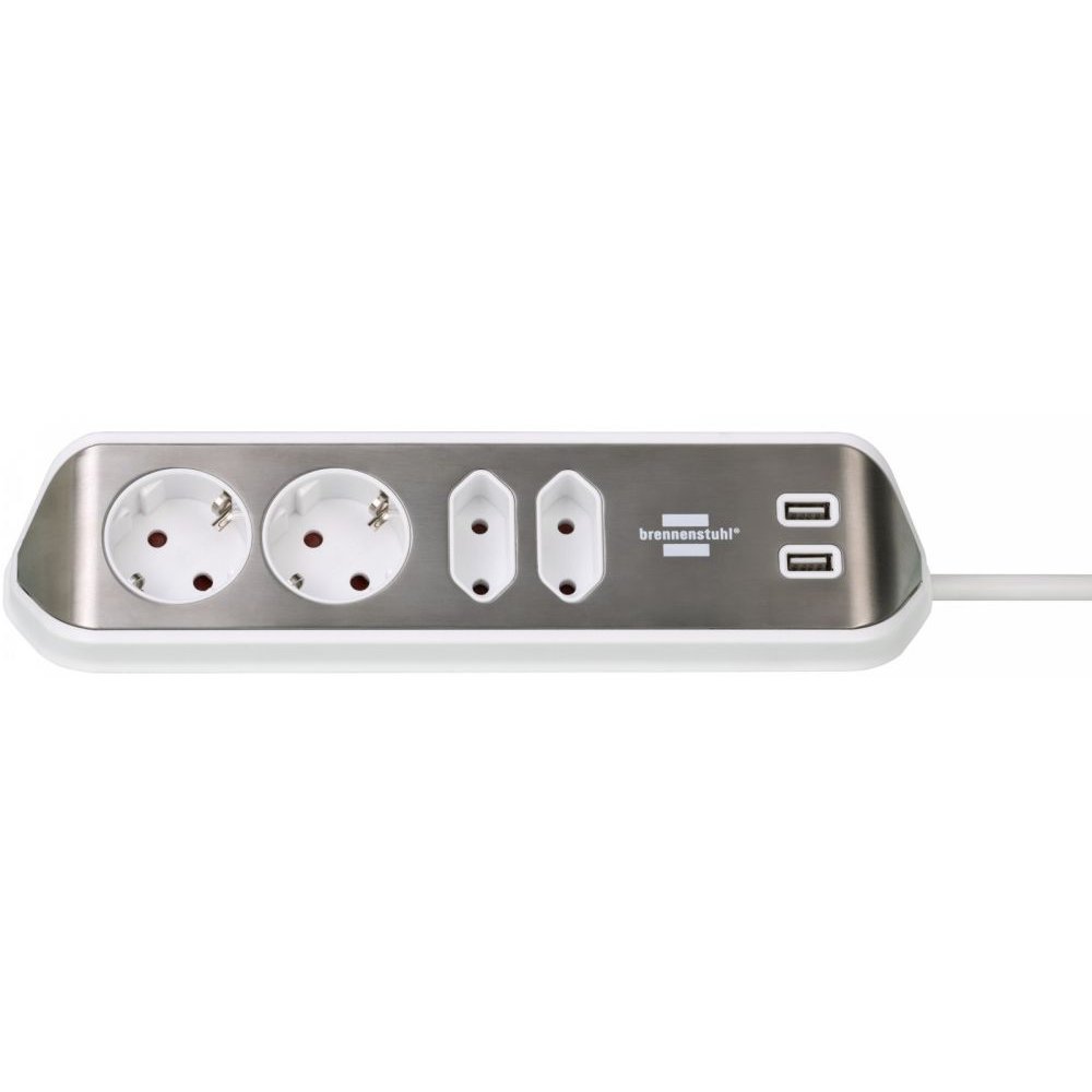 Prelungitor Brennenstuhl Estilo cu 4 prize, 2 USB, 3.1A, 2m. Fixare pe perete, design Inox. Comandă acum la 151 RON!