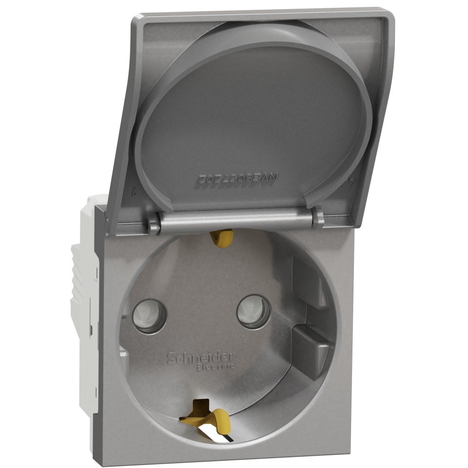 Priza 2P+E 16A Schneider Noua Unica, aluminiu. Design modern cu protecție. Cumpără acum la preț avantajos!