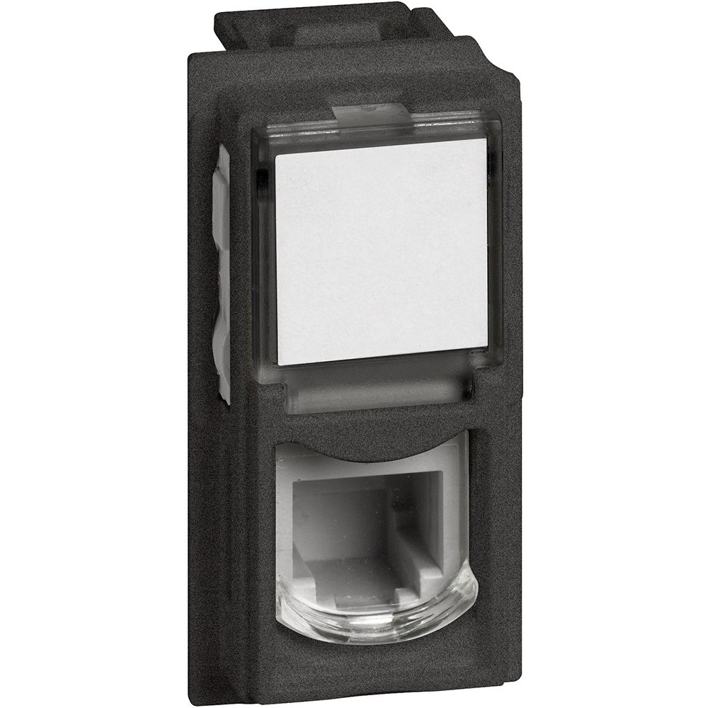 Priza telefon RJ11 Bticino Living Now, negru. Conexiune K10, design modular modern. Comandă acum la 62 RON!