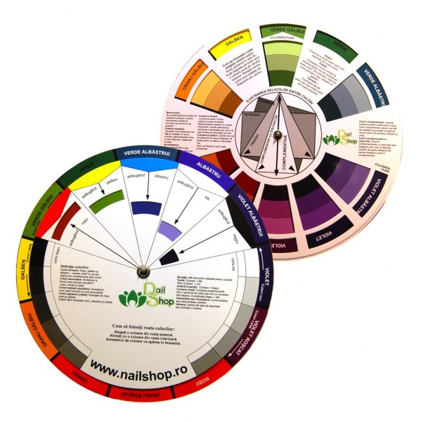 Alege perfect combinatiile de culori pentru manichiura ta! Cumpara Roata Culorilor Nailshop la doar 8 RON. Vezi detalii pe site.