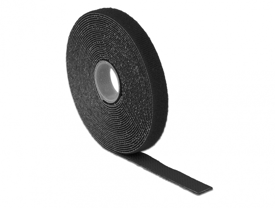 Comanda Rola cu arici neagra 5m x 13mm Delock 18711. Taiabila la lungime, cureluse refolosibile. Fixare cabluri rapida si sigura!