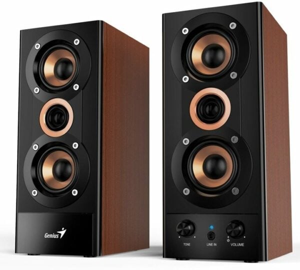 Boxe Genius lemn 20W RMS cu bas puternic și design elegant. Sunet clar cristalin pentru acasă. Comandă acum!