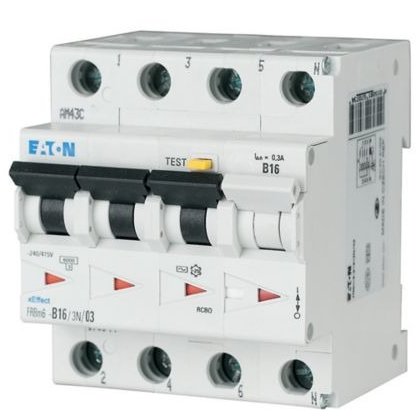 Siguranță diferențială RCBO Eaton 170986, 3P+N, 30mA, 16A. Protecție supracurent și scurtcircuit. Cumpără acum online!