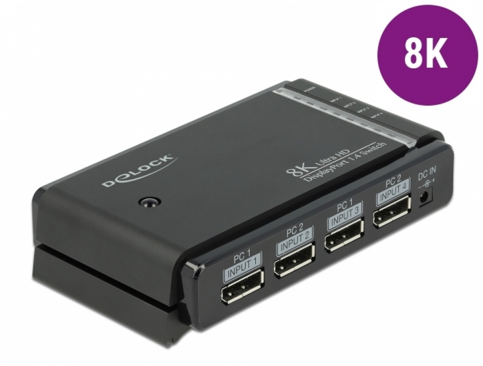 Switch Delock DisplayPort 8K@30Hz. Comuta intre 2 PC-uri, comanda IR. Cumpara acum!