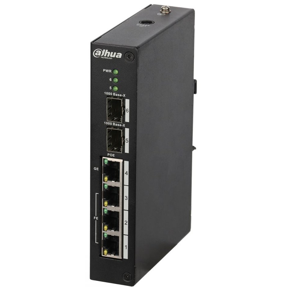 Switch PoE Dahua cu management, 96W și fibră optică. Ideal pentru sisteme supraveghere. Cumpără acum la 574 RON!