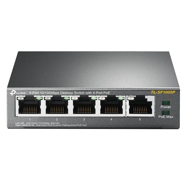 Achiziționează Switch TP-Link TL-SF1005P cu 4 porturi PoE. Conectivitate rapidă 10/100Mbps și instalare simplă. Comandă acum la preț avantajos!